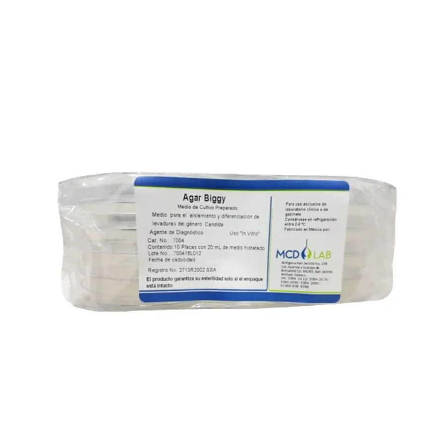 Medio de cultivo preparado Agar Biggy para el aislamiento y diferenciación de levaduras del género cándida.