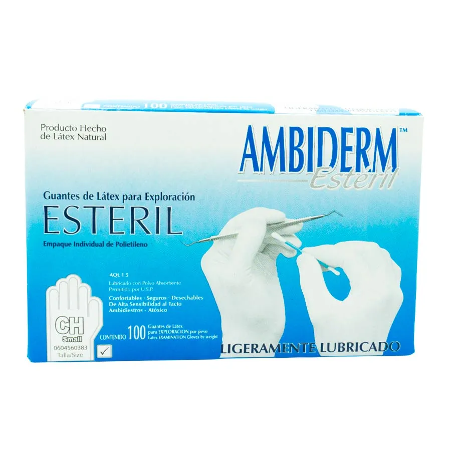 Guante de látex estéril en talla mediana con textura sedosa y bajo contenido en polvo. Es resistente a productos químicos, alcoholes, ácidos y álcalis.