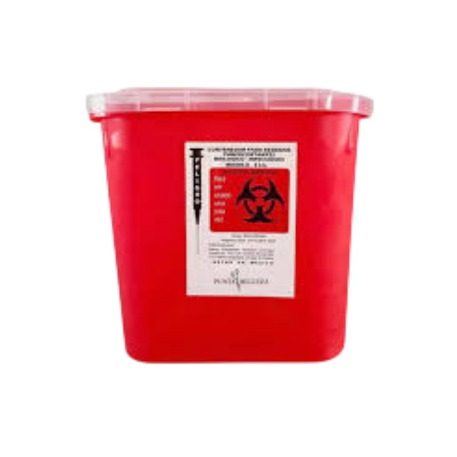 Contenedor para residuos punzocortantes biológicos, infecciosos, para ser usado una sola vez.